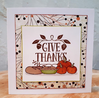 My daughter came to visit yesterday, and asked me to make a Thanksgiving card for her to give to a friend. She was very surprised when I said 'Yes please! Thank you! Thank you!'. You see , I've always seen fabulous Thanksgiving cards on people's blogs and always wanted to make one but we don't have that holiday in the UK. But my daughter's friend is married to an American , and they've invited her round for an early Thanksgiving celebration before they go to the States.