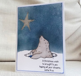 For my DT card I used a digital stamp of a seal (? sea lion?) by Mo Manning. I coloured it and masked it and created a sky using distress ink and pearly water.  The star is a Craft Stamper freebie stamp and the sentiment is by Little Claire.
