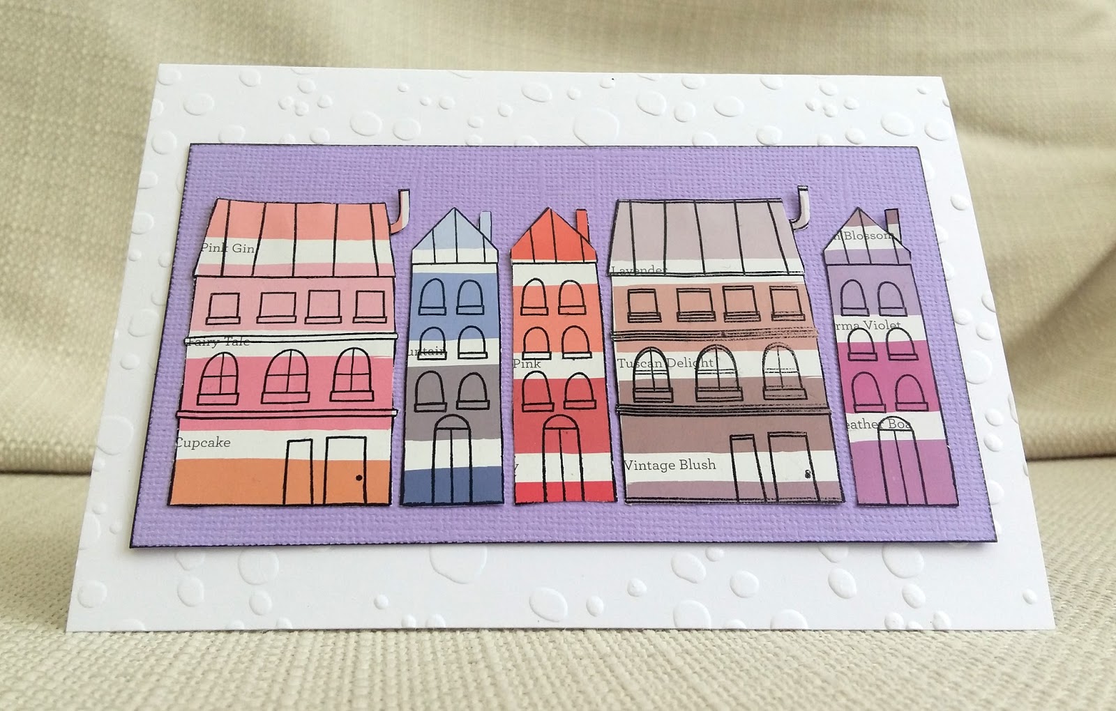 Wonderful color with the beautiful city scene! So fun with the paint chips!!