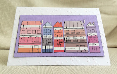 I stamped onto the paintchips using Mama Elephant stamps, cut them out and stuck them on a lilac panel and then onto a dry embossed card base.