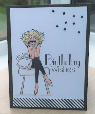 I made this card for my partner's mother's birthday. I had previously scanned the Avery Elle butterfly stamps into my PC, so I used the welding tool on Silhouette Studio to cut a card blank using their outline to make a border. Then I lined 3/4 of the inside with some scrap patterned paper, stamped the butterflies onto the same paper and cut them out.